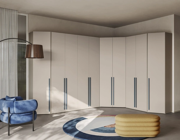 Cerchi un guardaroba in melaminico? Clicca e scopri armadiature ad angolo con ante battenti di Colombini Casa.