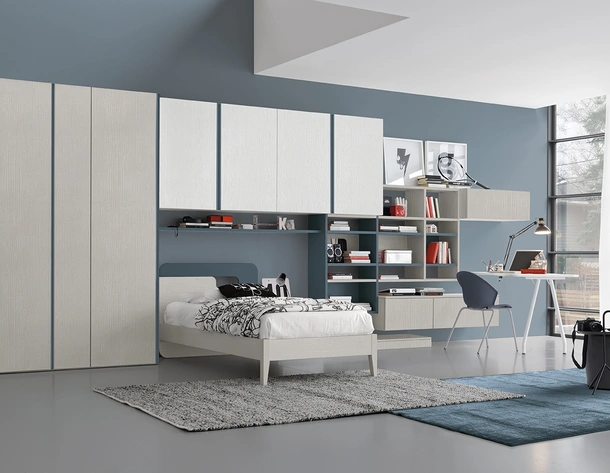 Camerette salvaspazio per ragazzi: scopri il modello in melaminico Golf Y03NS di Colombini Casa per stanzette moderne.