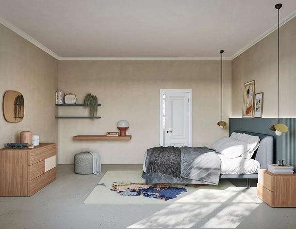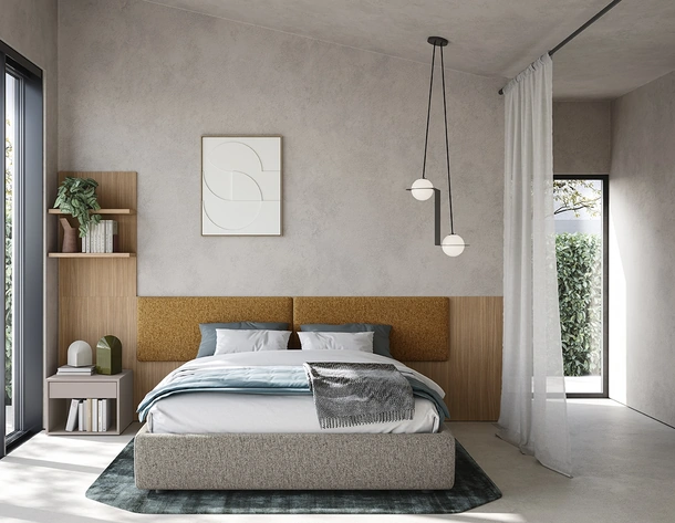 Vuoi ridefinire la zona notte? Eccoti il letto in melaminico Sector di Colombini Casa per spazi moderni.