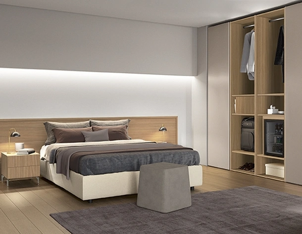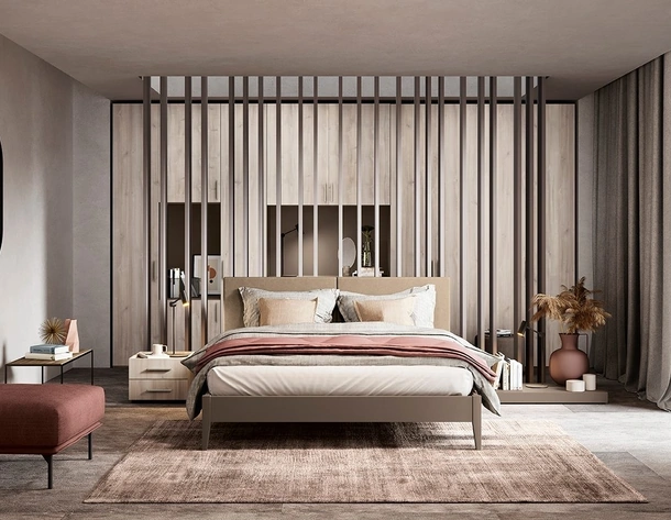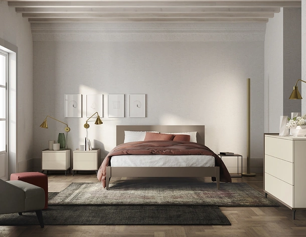 Vuoi ridefinire la zona notte? Eccoti il letto in melaminico Sector di Colombini Casa per spazi moderni.